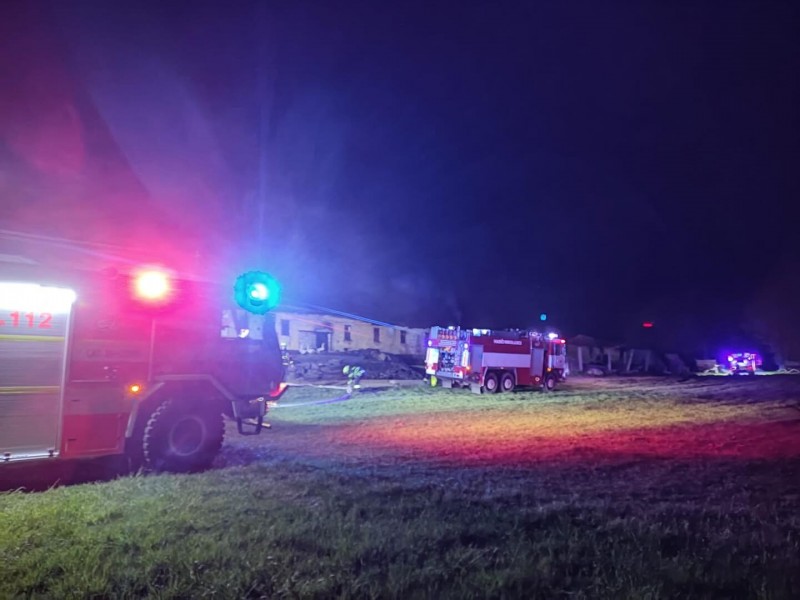 Požár kravína zaměstnal hasiče, vyhlášen byl druhý stupeň poplachu