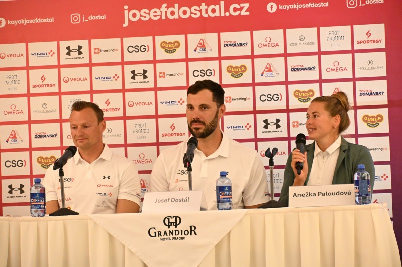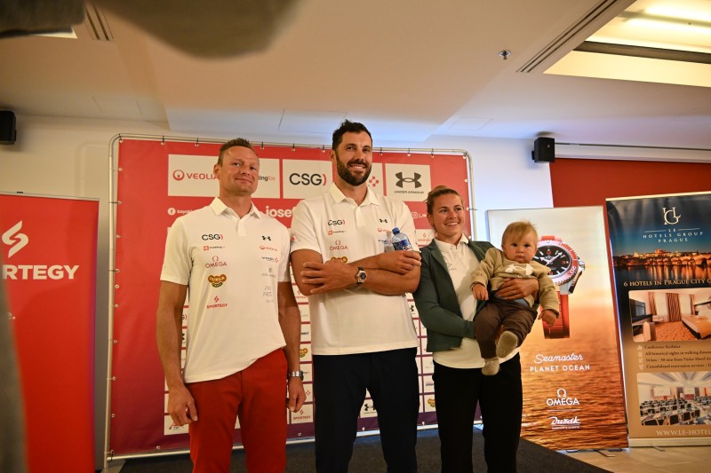 S novinkami, které je čekají,  seznámili novináře  v Praze 28. dubna 2026 Josef Dostál,  Anežka Paloudová a ukázal se jejich synek Jonatánek, dále pohovořil i trenér zúřastněných sportovců Pavel Davídek.