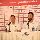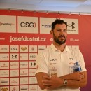 Trenér Pavel Davídek, Josef Dostál, Anežka Paloudová na setkání s novináři
