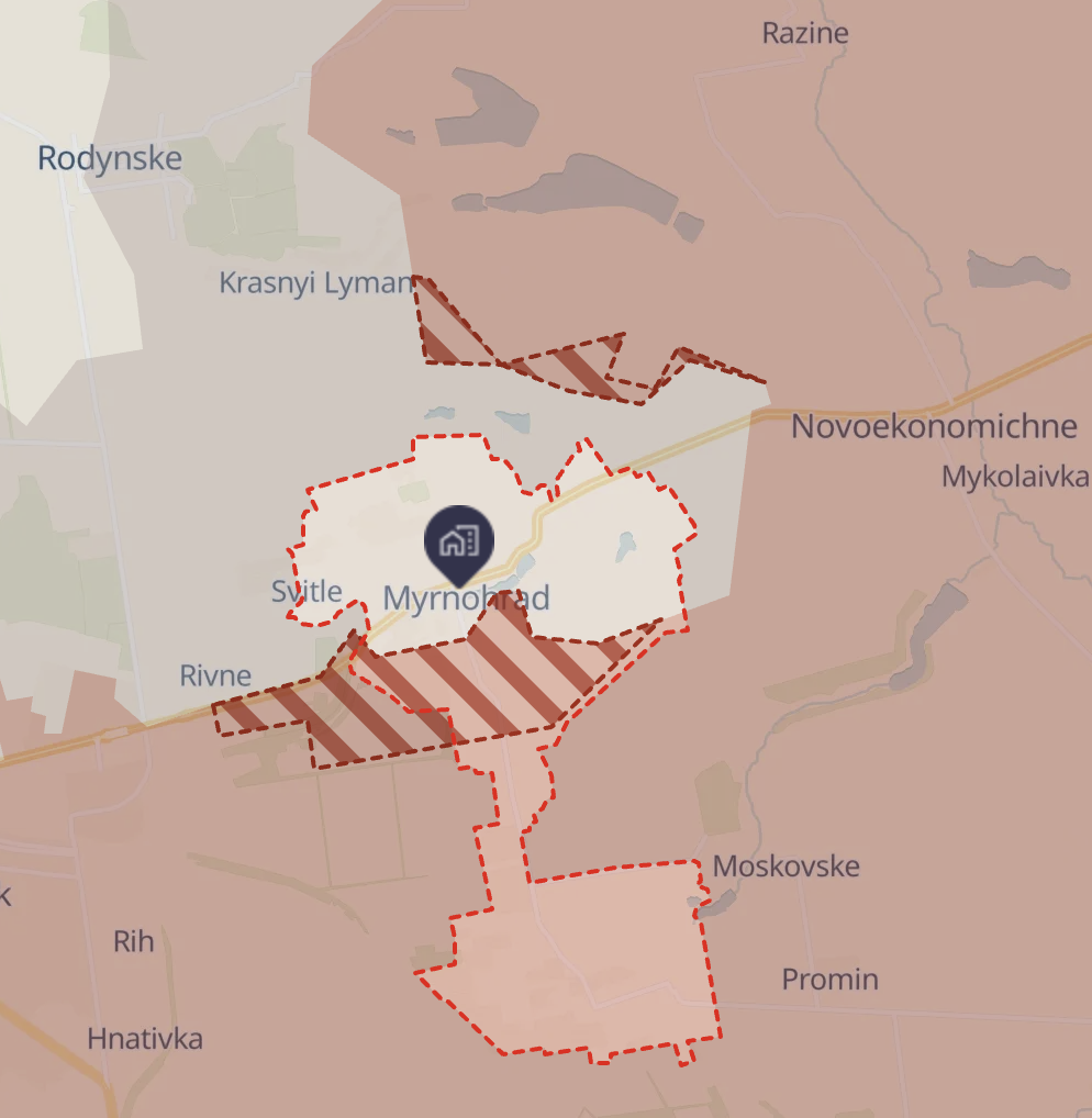 Ukrajinský voják s volacím přezdívkou „Mučnoj“ píše, že ukrajinská kontrola nad určitými oblastmi v Mirnogradu je neúplná, což znamená, že Ukrajina fakticky ztratila Mirnograd a sousední Rodinskoje.