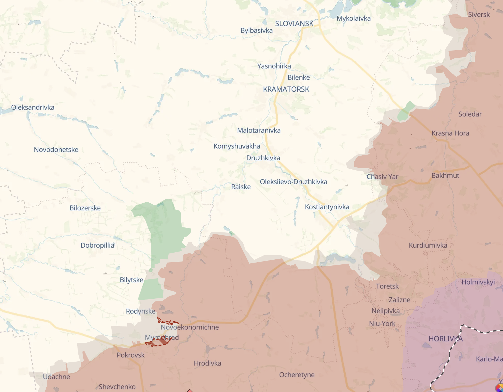 V oblasti Pokrovska pokračují boje o severní a západní okraj města, kde se ruští vojáci pokoušejí přiblížit k Dobropilji z jihu. Zatím nedošlo k žádnému významnému průlomu, postup se měří v řádu stovek metrů, ale tlak je udržován podél celé fronty.