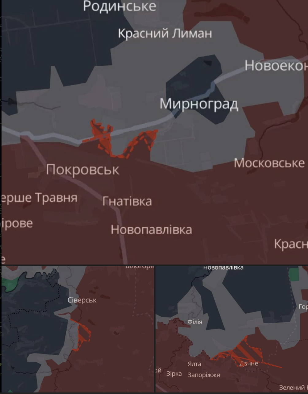 Během posledních několika dnů se oblast kontrolovaná ukrajinskými ozbrojenými silami v Mirnogradu výrazně zmenšila. Podle Deep State se „šedá zóna“ kolem města rozšířila.